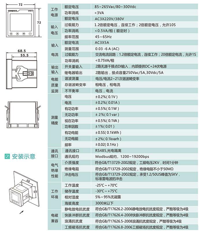 1.測量三相電壓、電流、有功功率、無功功率、視在功率、有功電能、