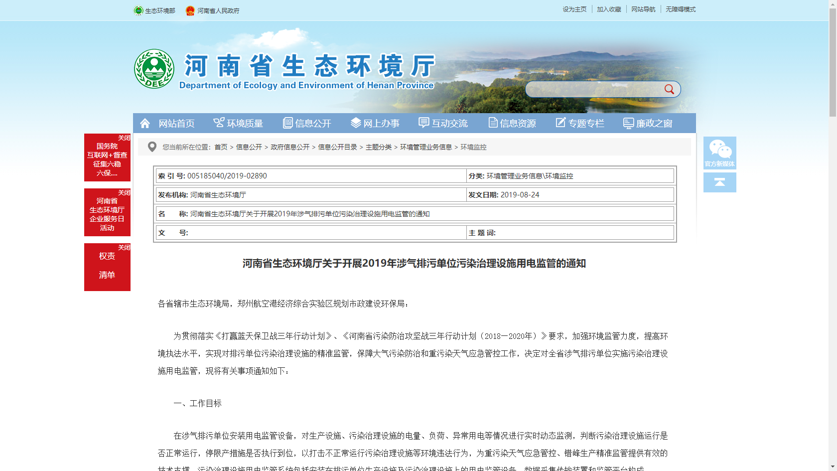 3.新鄉市生態環境局關于部署安裝工業企業用電量監控系統的通知