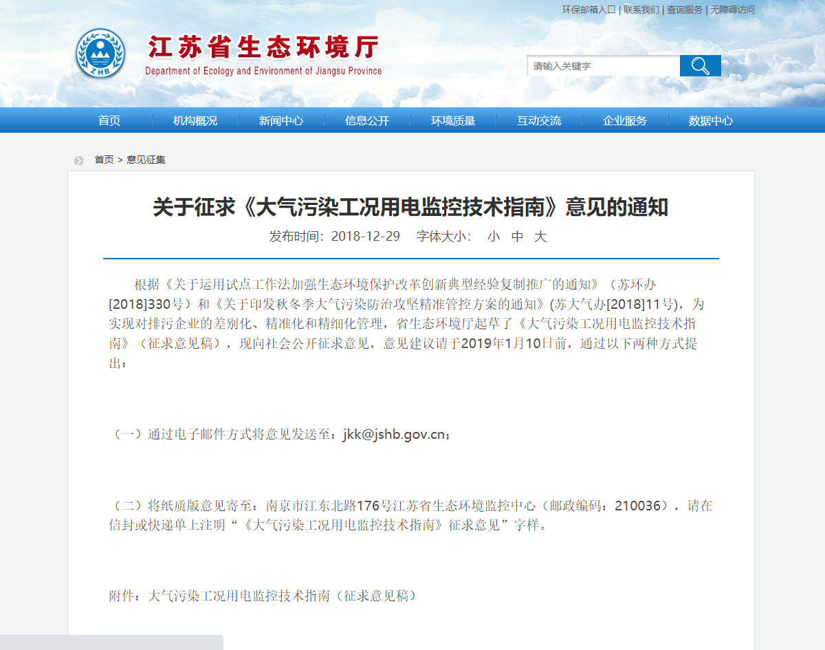 1.關于征求《大氣污染工況用電監控技術指南》意見的通知