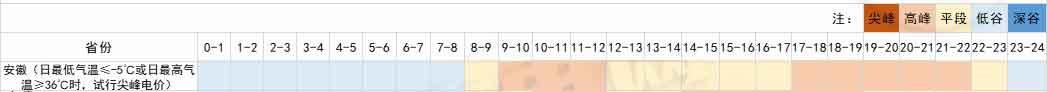 2、安徽省一般工商業及大工業用戶分時電價對應的尖峰平谷時段分布