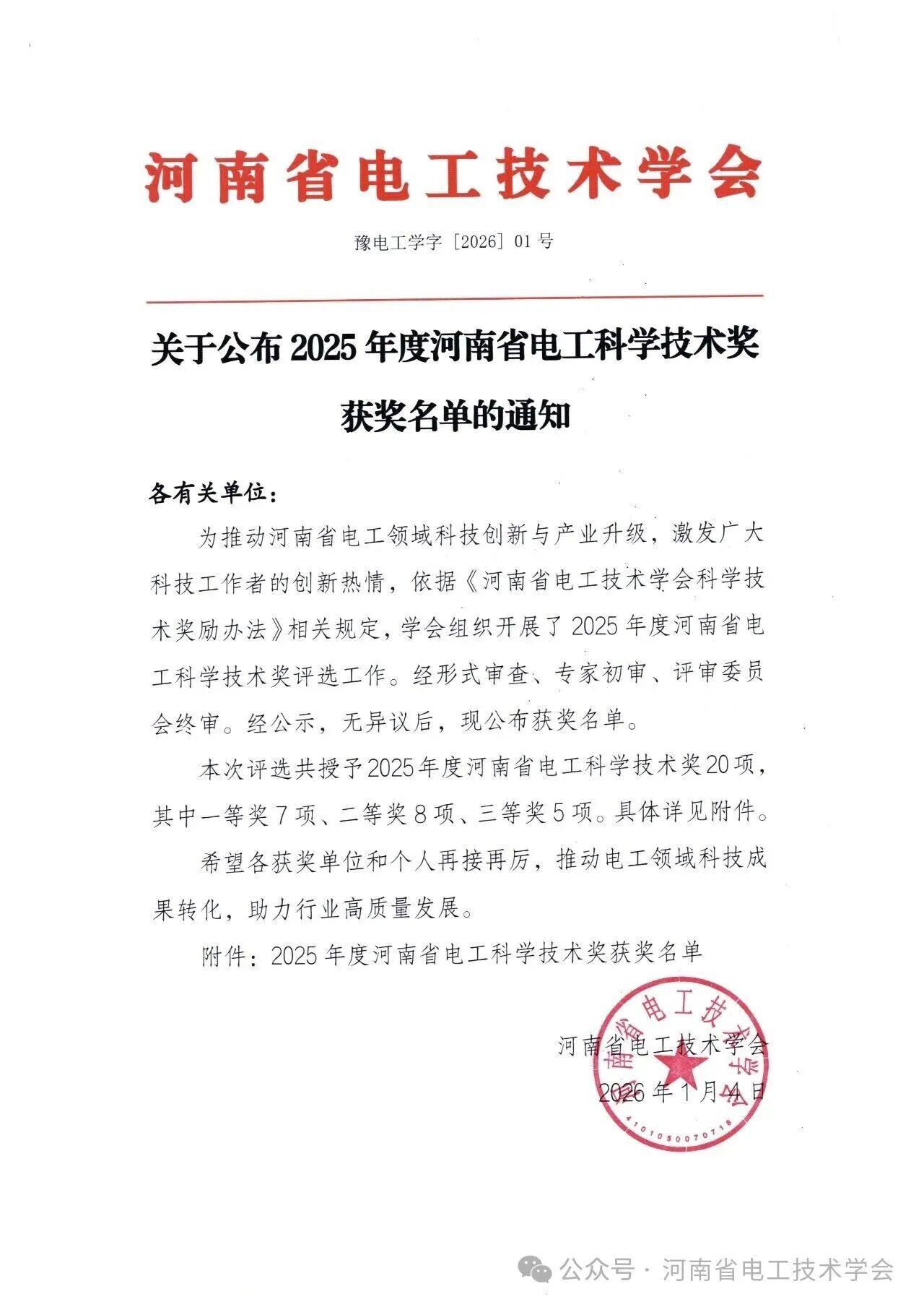 喜報!康派智能榮獲河南省電工科學技術二等獎
