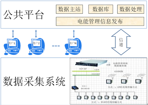 能源管理系統(tǒng)的數(shù)通信設(shè)計主要有四種485總線通信、GPRS無線通信、DTU無線集中通信、主站服務(wù)器通信。在金桃園電力需求側(cè)管理平臺項目中采用的是485總線通信的方式。