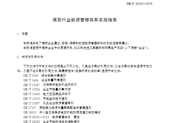 《煤炭行業(yè)能源管理體系實施指南》結(jié)合煤炭企業(yè)特點制定,通過分析煤炭企業(yè)能源管理,能源使用及能源消耗現(xiàn)狀,結(jié)合我國煤炭行業(yè)能源管理經(jīng)驗和成果,指導(dǎo)煤炭企業(yè)建立、實施、保持和持續(xù)改進能源管理體系,實現(xiàn)能源目標(biāo),達到規(guī)范企業(yè)能源管理行為、降低能源消耗、提高能源利用率、促進企業(yè)可持續(xù)發(fā)展的目的。