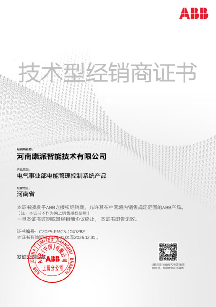 ABB技術型經銷商證書